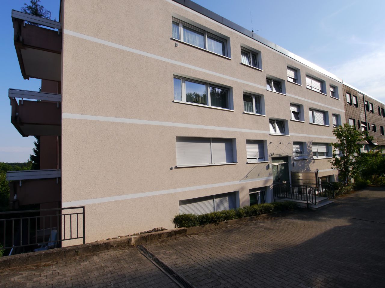 In der Nauenerstraße waren die Balkonplatten und die Betonbrüstungen stark beschädigt. An vielen Stellen lagen die Bewehrungsstähle frei. Wir haben den schadhaften Beton nach den DAfStB-Richtlinien, gemäß Instandsetzungsprinzip W, saniert. Als Oberflächenschutzsystem für die Balkonbrüstungen haben wir uns für eine OS4 Beschichtung entschieden. Die Balkonplatte wurde abgedichtet und mit Fliesen belegt.